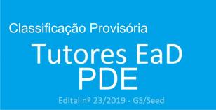 16:48 Classificação Provisória dos Editais 23/2019 - GS/SEED e 24/2019 - GS/SEED O Departamento de Desenvolvimento de Curricular, por meio da Coordenação de Articulação Acadêmica, divulga o Edital 27/2019 - GS/SEED, o qual consta a classificação provisória dos Professores do Quadro Próprio do Magistério inscritos no processo seletivo, Edital 23/2019 - GS/SEED e 24/2019 - GS