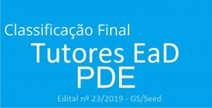 17:22 Resultado de Recurso e Classificação Final do Edital nº 23/2019 O Departamento de Desenvolvimento de Curricular, por meio da Coordenação de Articulação Acadêmica, divulga o Edital 31/2019 - GS/SEED, o qual consta a classificação final dos Professores do Quadro Próprio do Magistério inscritos no processo seletivo, Edital 23/2019 - GS/SEED e 24/2019 - GS/SEED