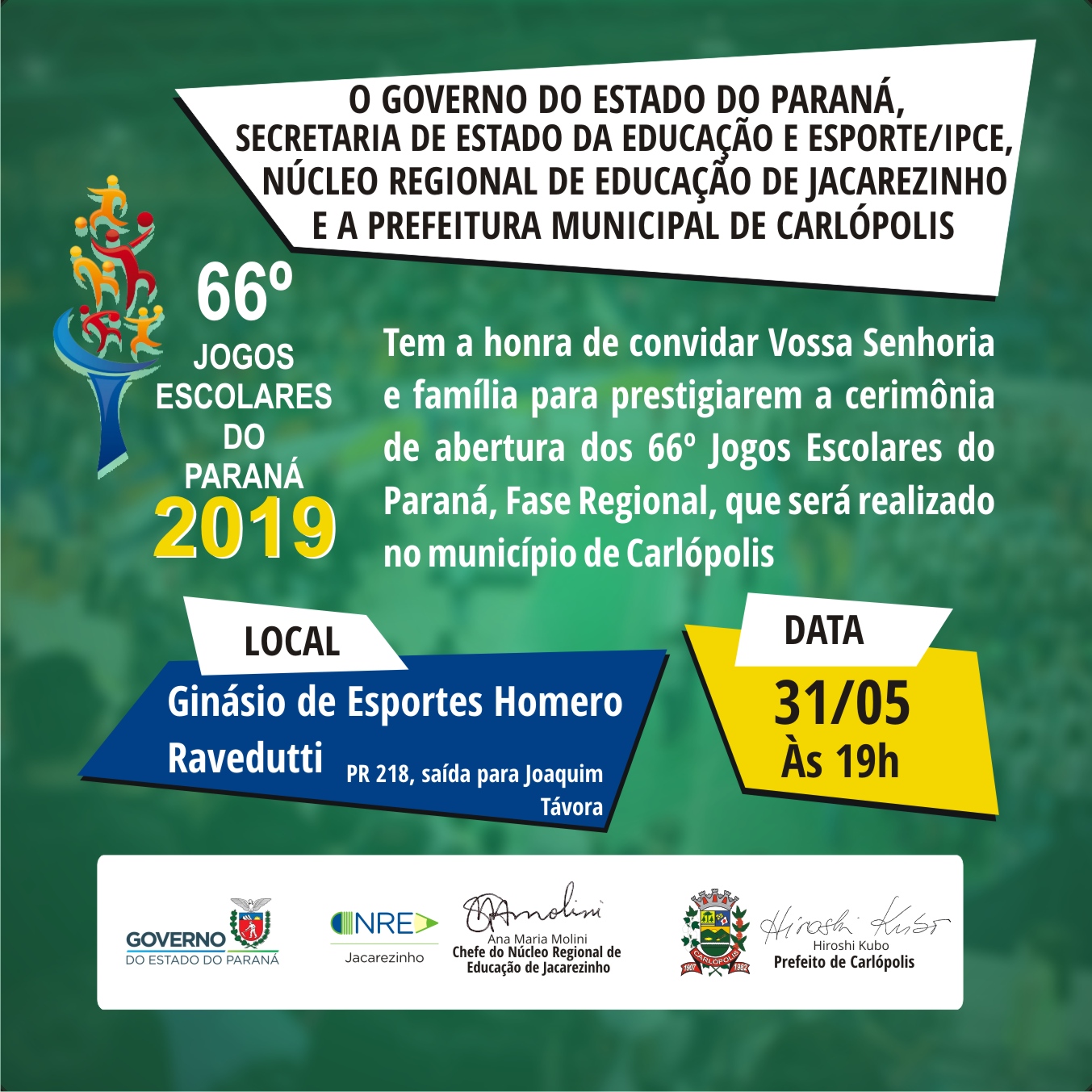 Avisos Convite para abertura do 66º Jogos Escolares do Paraná - Fase Regional - Carlópolis 24/05/2019 - 10:30 convite_jeps_carlopolis.jpg Compartilhe: Voltar Início Imprimir Baixar
