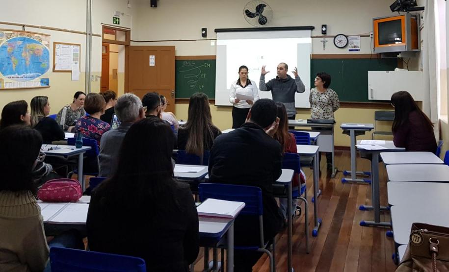 Nos dias 25 e 26 de julho, aconteceu, nas instituições de ensino da Rede Pública Estadual e nas Escolas Especializadas, Estudo e Planejamento referente ao segundo semestre de 2019 no qual foram desenvolvidas oficinas com todos os profissionais da Educação, equipe diretiva, equipe pedagógica, professores e agentes educacionais. O estudo e planejamento teve como objetivo o aprimoramento das práticas pedagógicas, com foco na aprendizagem e permanência dos estudantes na escola. Foram trabalhados vários assuntos: Avaliação e Replanejamento do Plano de Ação, As dez Competências da BNCC, Ensino e Aprendizagem, Como nossos Alunos Aprendem, Currículo Funcional, Estudos de Casos, com materiais específicos para os Cursos Médio Integrado, Cursos subsequentes e EJA. A chefe do NRE, professora Ana Maria Molini, ressalta a importância do estudo e planejamento para todos os profissionais, pois a qualidade do ensino e da aprendizagem passa pela formação de todos os envolvidos com a educação.
