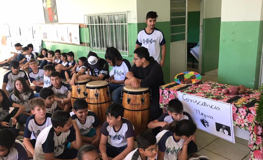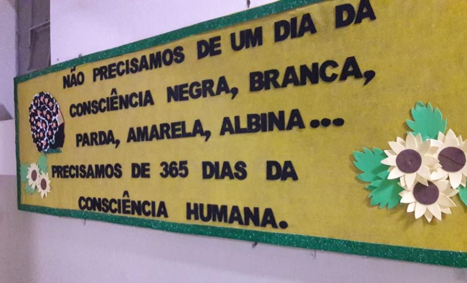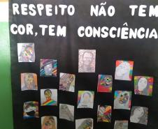 Várias escolas do nosso NRE aproveitaram o dia 20 de novembro para comemorar junto aos seus alunos o Dia da Consciência Negra. Essas comemorações foram fomentadas pelos participantes da Equipe Multidisciplinar, cuja temática em 2019 é a Abordagens e aspectos sociais e pedagógicos sobre a presença indígena e negra do Paraná. Esta formação, oferecida pela Secretaria Estadual de Educação e Esporte, propõe dar continuidade na capacitação dos educadores, estudantes e comunidade escolar para atuar no processo de educação das relações étnico-raciais, conforme o disposto no artigo 26 da LDB/96, na Lei Federal n. 10.639/03, na Lei Federal n. 11.645/08, nas Diretrizes Curriculares Nacionais para Educação das Relações Étnico-Raciais e para o ensino de História e Cultura Afro-brasileira, no Estatuto da Igualdade Racial e nas Diretrizes Curriculares Nacionais para Educação Escolar Indígena.