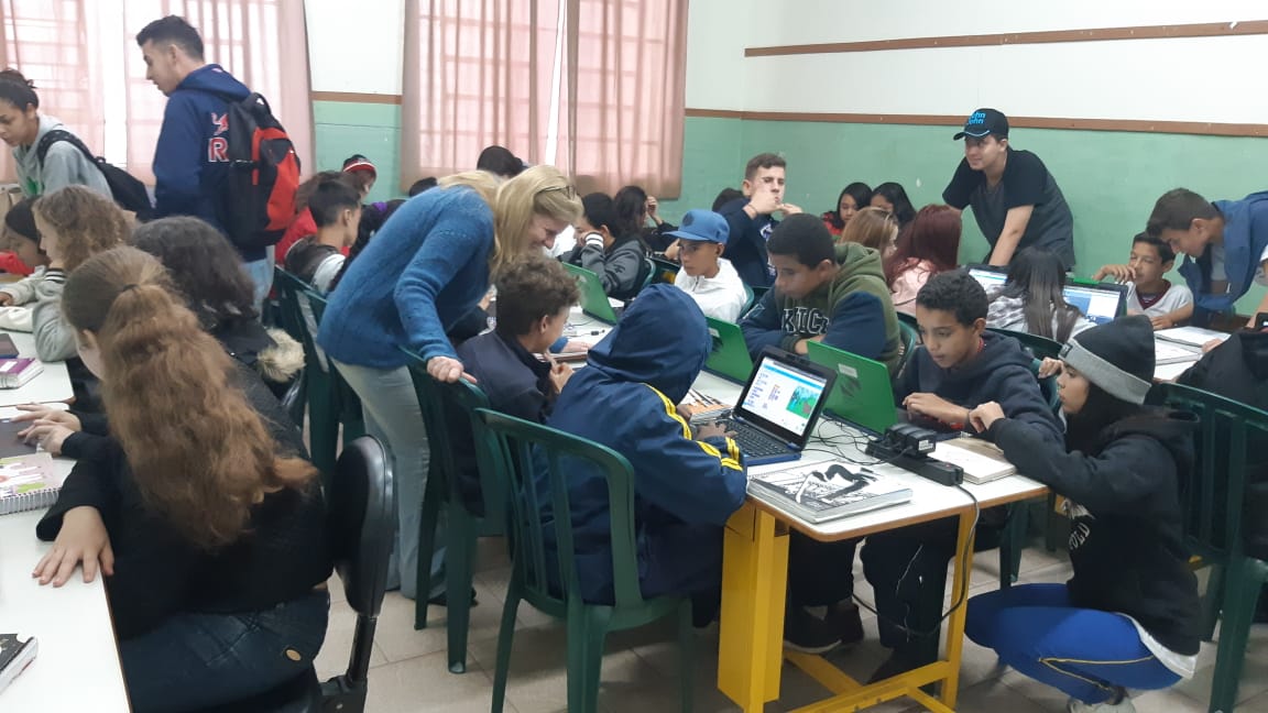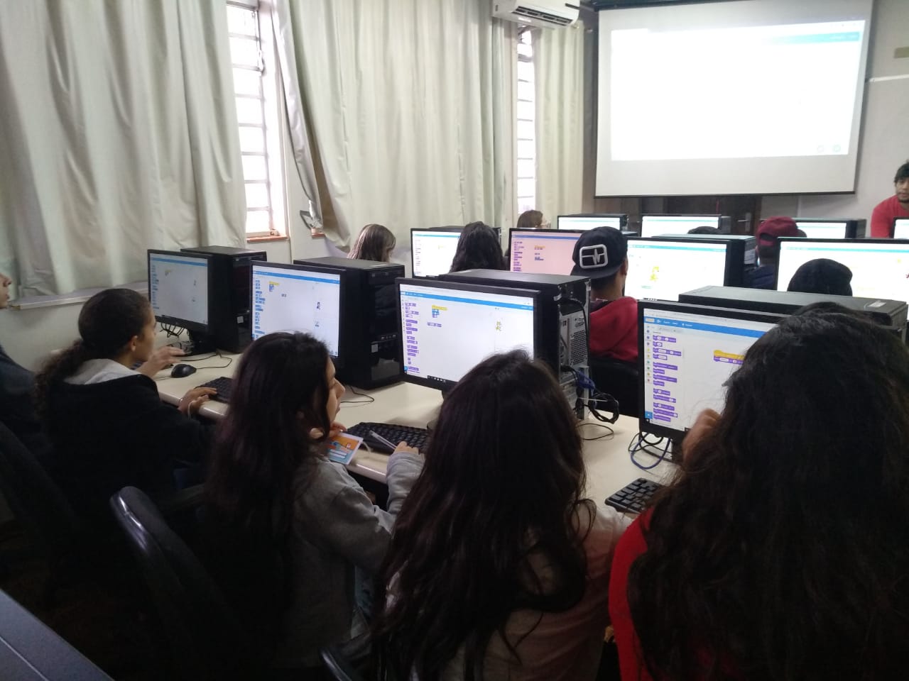 E pelo Colégio Estadual Luiz Setti, o coordenador do curso técnico em informática, Felipe Resende, em parceria com o professor Murilo Cretuchi, realizou atividades com uma das turmas do colégio, sendo a atividade supervisionada por eles.