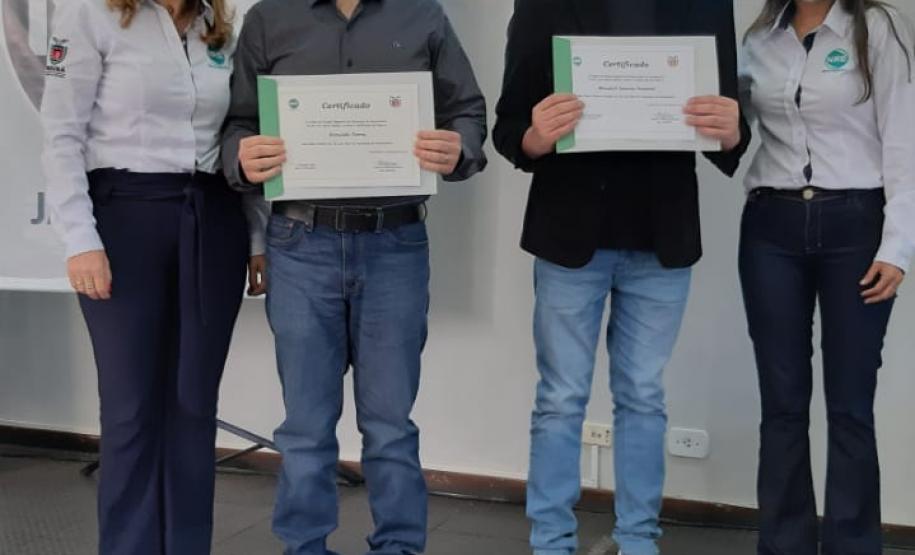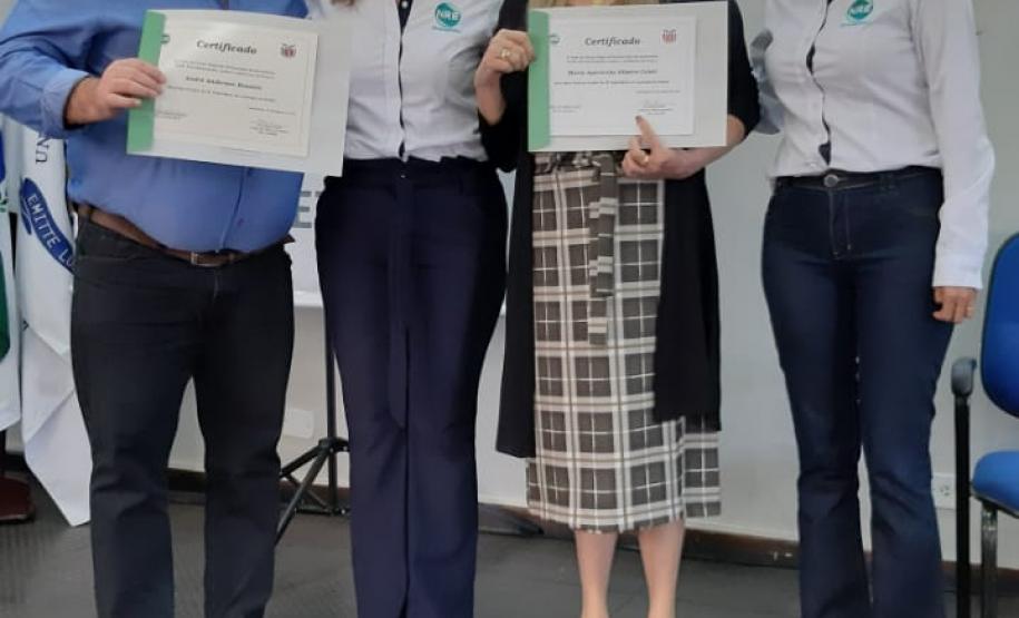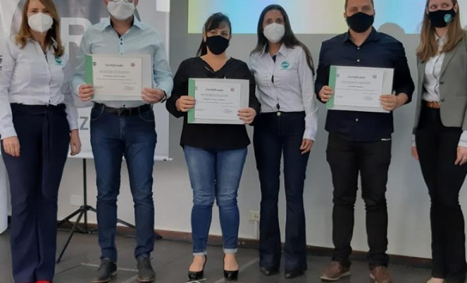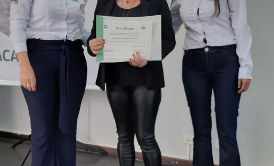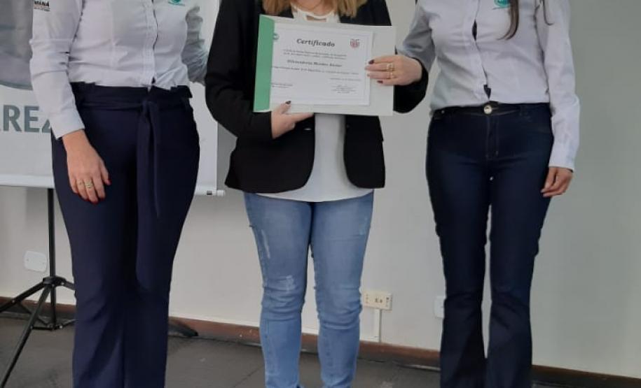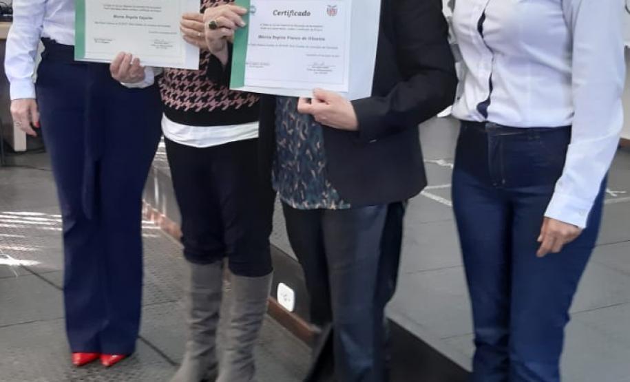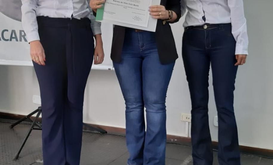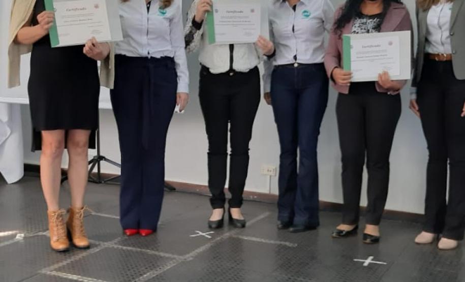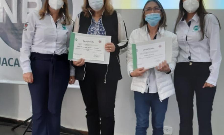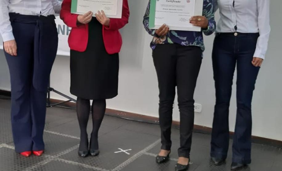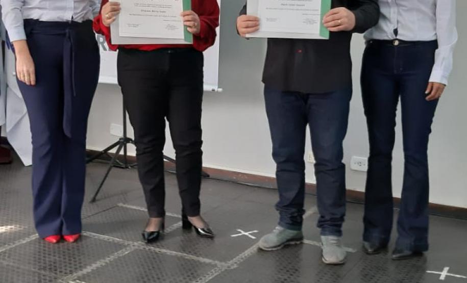 Os diretores e diretores auxiliares eleitos das instituições públicas estaduais assinaram a ata de posse e receberam um certificado de posse entregues pela chefia e assistente do Núcleo Regional de Educação.