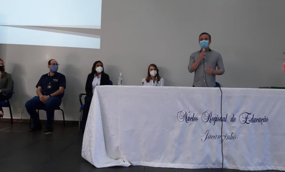A cerimônia contou com as presenças do Sr. Marcelo Palhares, prefeito de Jacarezinho, do Padre Alex Nogueira de Carvalho, do Mario Augusto Pereira, liderança política regional representando o Sr. Governador Ratinho Júnior, de Denise de Jesus, assistente da chefia do Núcleo Regional de Educação de Jacarezinho e de Ana Maria Molini, chefe do Núcleo Regional de Educação de Jacarezinho.