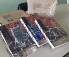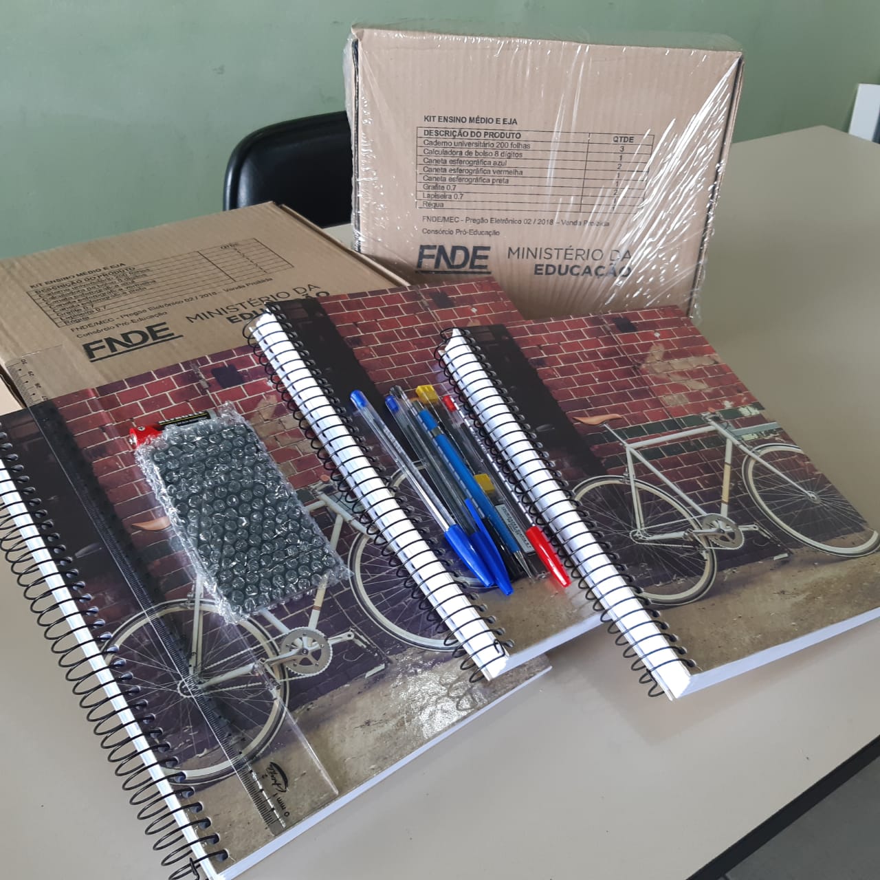O Núcleo Regional de Educação de Jacarezinho fez a entrega de materiais aos Diretores, que deverá ser entregue no início de 2020 aos alunos matriculados no Ensino Médio regular e modalidade de Educação de Jovens e Adultos - EJA tanto no Fundamental – Fase II quanto no Ensino Médio das escolas selecionadas, o Kit contém: 3 cadernos universitários; 1 calculadora de bolso 8 dígitos; 1 caneta esferográfica; 1 lapiseira 0.7; 2 tubos de grafite com 12 unidades e 1 régua, totalizando 2.237 kits, distribuídos entre as escolas, conforme os dados de matrículas do Censo de 2018. Os Colégios contemplados são:
