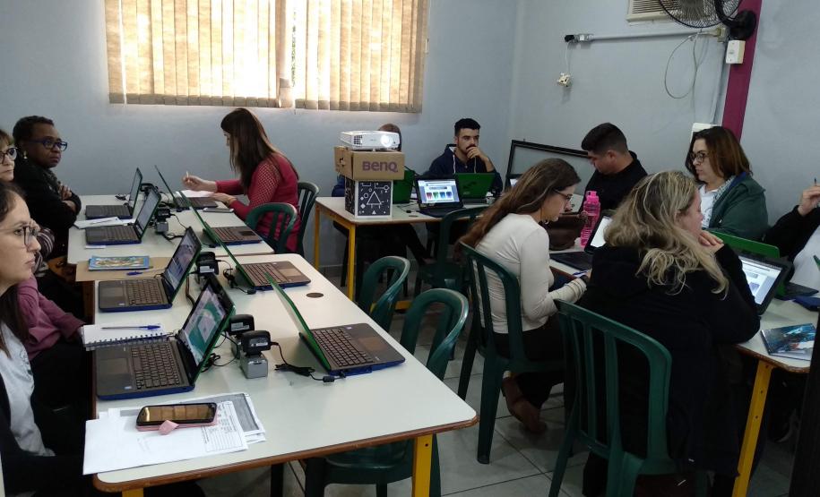 Essa formação se deu por meio da Coordenação Regional de Tecnologia na Educação (CRTE), que este ano passou a contar com um espaço próprio para as formações na sede do NRE. A sala está equipada com netbooks advindos do Programa Escola Conectada e que foram configurados para realizar essas formações com os profissionais da educação.