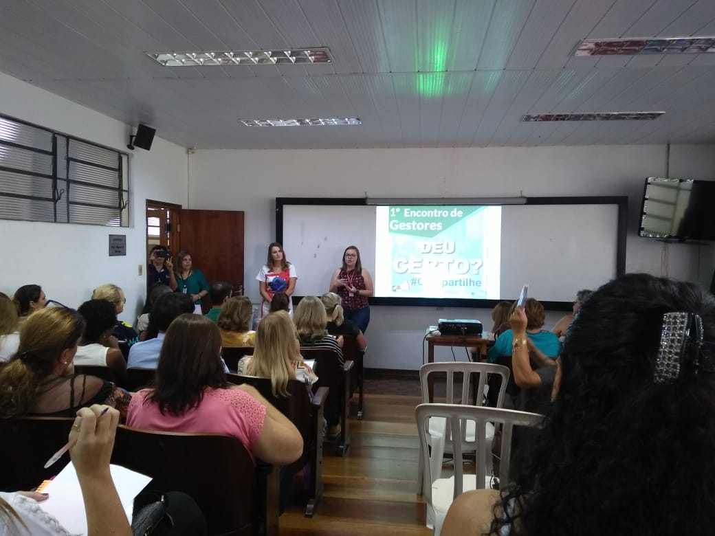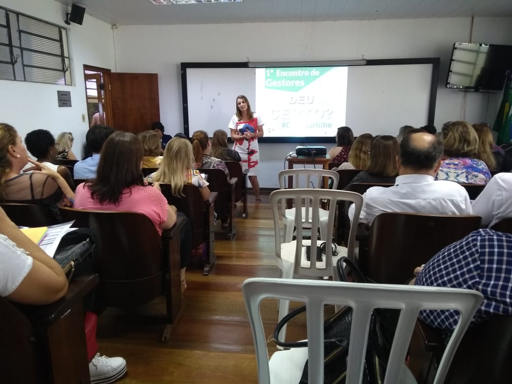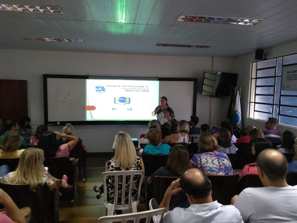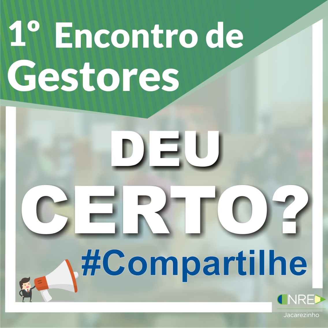 No dia 15/04/2019, o Núcleo Regional de Educação de Jacarezinho realizou o Primeiro Encontro de Gestores # Deu Certo? Compartilhe. Na ocasião, a Chefe, Professora Ana Maria Molini, reuniu-se com diretores e pedagogos para o repasse da análise de dados dos resultados da Prova Paraná, abandono escolar, absenteísmo dos profissionais da educação e tutoria pedagógica, cujo objetivo é qualificar os gestores e proporcionar subsídios aos professores para a elaboração de uma boa aula com foco no aprendizado dos alunos.