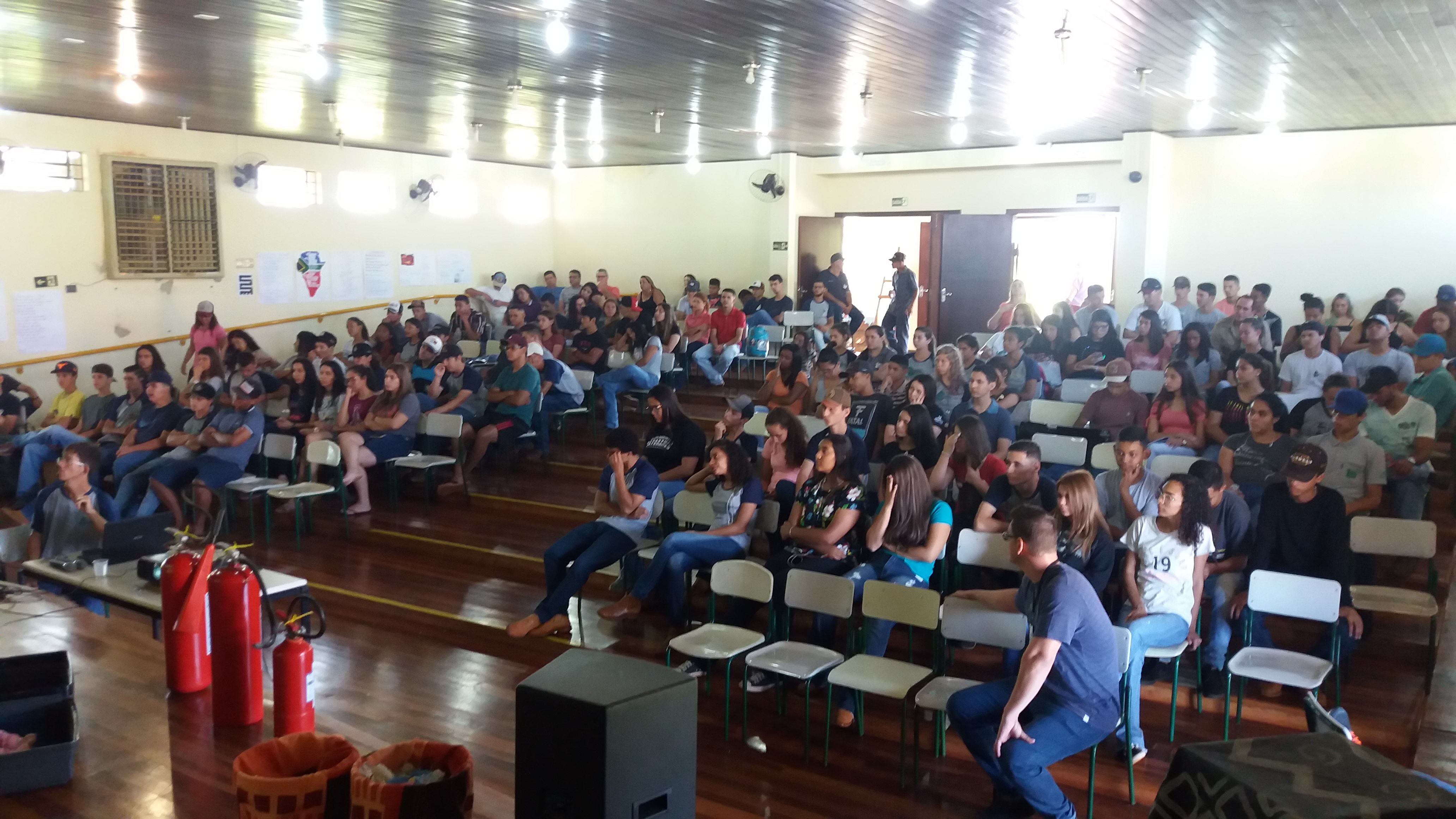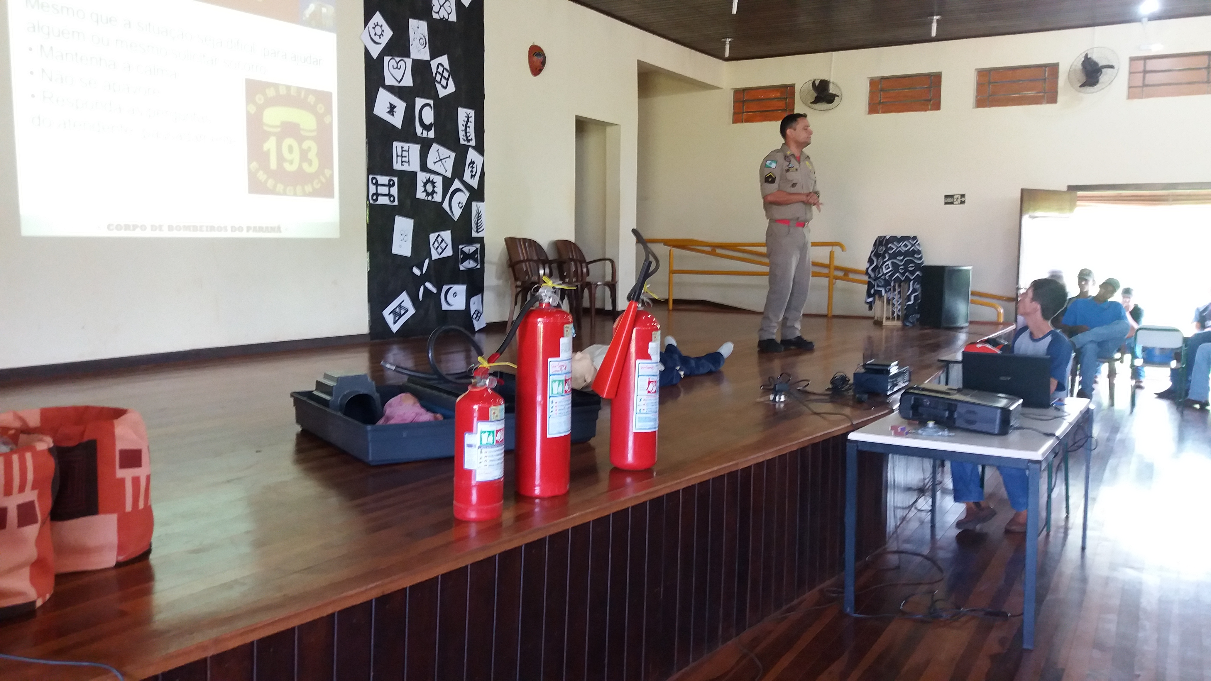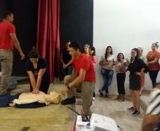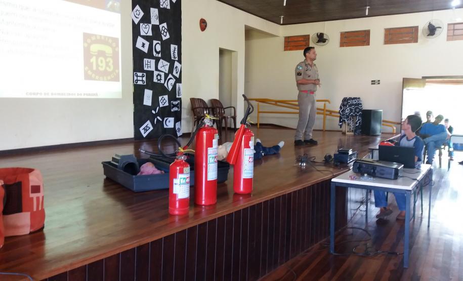 Além da formação ofertada, voltada aos professores e funcionários das unidades escolares, o Núcleo Regional de Educação de Jacarezinho, em parceria com a 2ª Sessão de Bombeiros do 7º SGBI, promoveu uma palestra sobre Noções Básicas de Primeiros Socorros e Combate a Princípios de Incêndio, na manhã do dia 21/11/2019 (última quinta-feira), voltada aos estudantes do Centro Estadual de Educação Profissional Agrícola – CEEPA Mohamad Ali Hamzé, de Cambará-PR. Tais noções são cruciais para a realidade daquela comunidade escolar, que convive mais tempo na instituição de ensino, que conta com alojamentos e cursos profissionalizantes em horário integral.