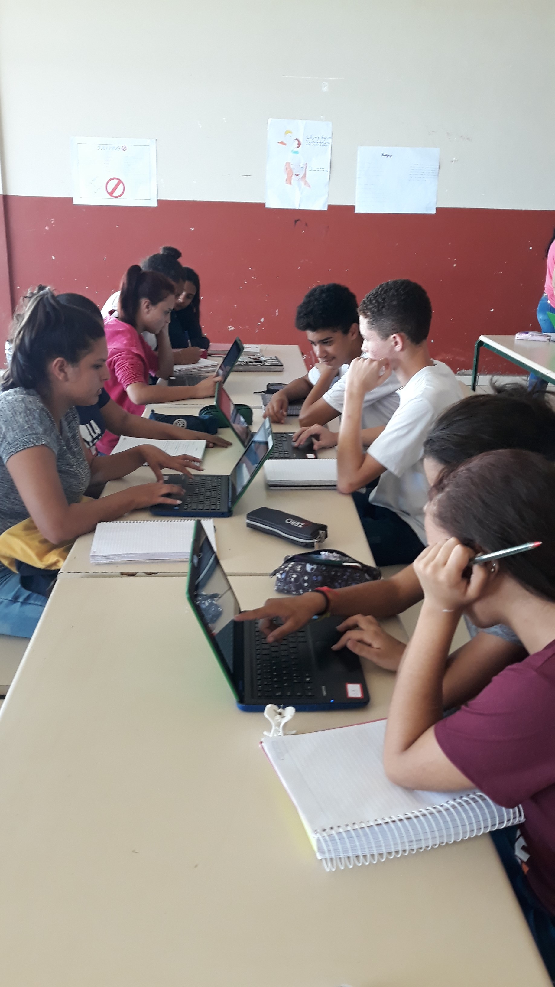 Ainda com o uso dos netbooks, a sala de aula deixa também de ser o único espaço onde ocorre o processo de ensino e aprendizagem, prova disso são os alunos do Ensino Médio Integral do C.E. Lucy Requião de Cambará, que realizaram um trabalho de pesquisa em um ambiente diferente. Eles aproveitaram o espaço do refeitório que é aberto ao ar livre e já tem mesas e as cadeiras que facilitaram a execução da atividade.